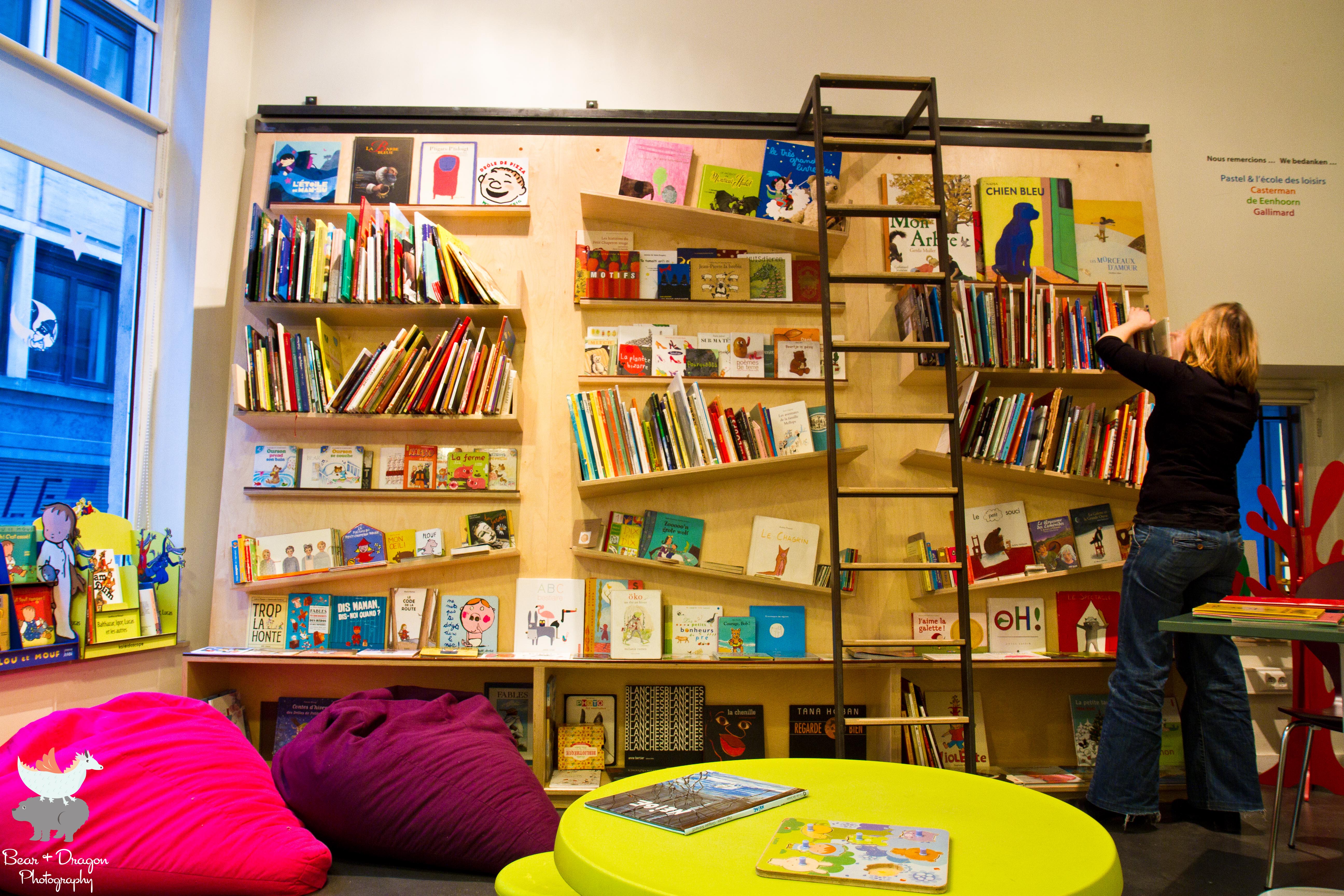 Le Wolf is tucked away behind Grand Place at Rue de la Violette 18. When you come in, you are immediately struck by the whimsy of it all with floor to ceiling birch trees, rows of bright books, wonderful art and a little house/cinema all nicely laid out for your pleasure. They do of course have loads of wonderful books in French and Dutch (practice makes perfect :-)). The cinema also plays short films for 2 EUR a go.